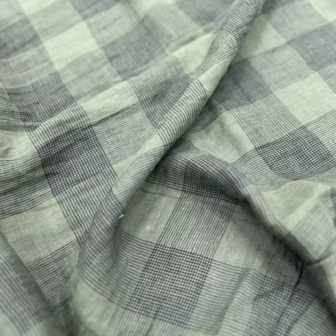 Dyed Check Washed Fabric,Yarn-Dyed Check Linen Fabric 175gsm 140cm Width