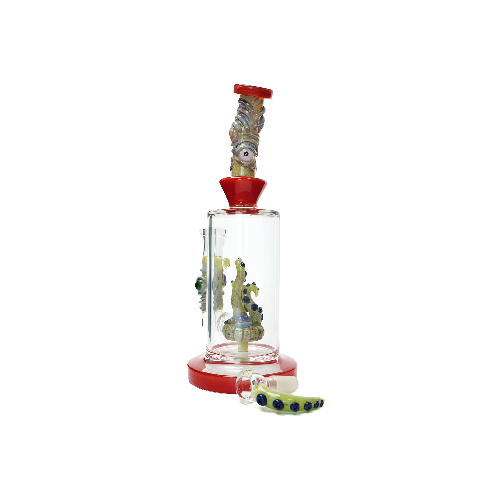 Multi tentacle hookah,This 10.6 inch hookah water pipe is made of heavy glass and features a bubbler design with a bowl. It is handcrafted in China and weighs 597g. The parts include a 14mm and bong, making it a perfect addition to any tobacco collection. This glass water pipe is perfect for smoking sessions with friends and is a must-have for any hookah enthusiast. It belongs to the Tobacciana category and is a featured refinement of glass water pipes.