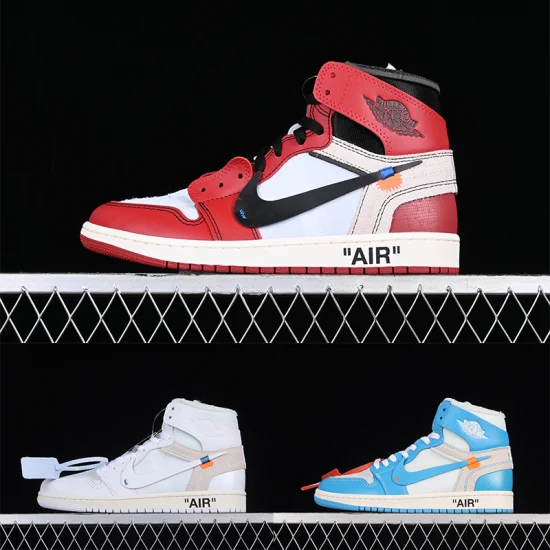 Nike Air Jordan 1 High-Nike Air Jordan Ow White Blue Red Basketball Shoes Sports Sneaker