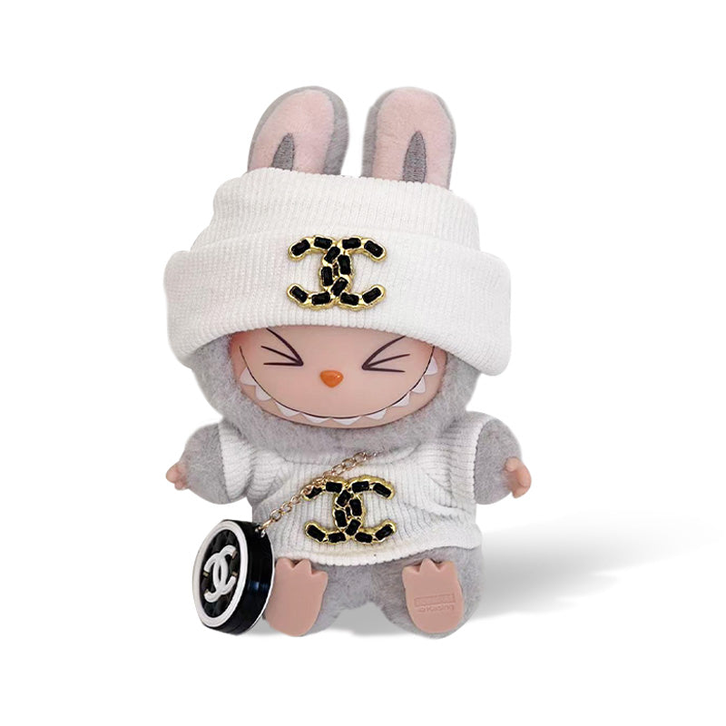 POP MART The Monsters Labubu Fashion Dress – Black Chanel Logo Style Top + Hat + Bag