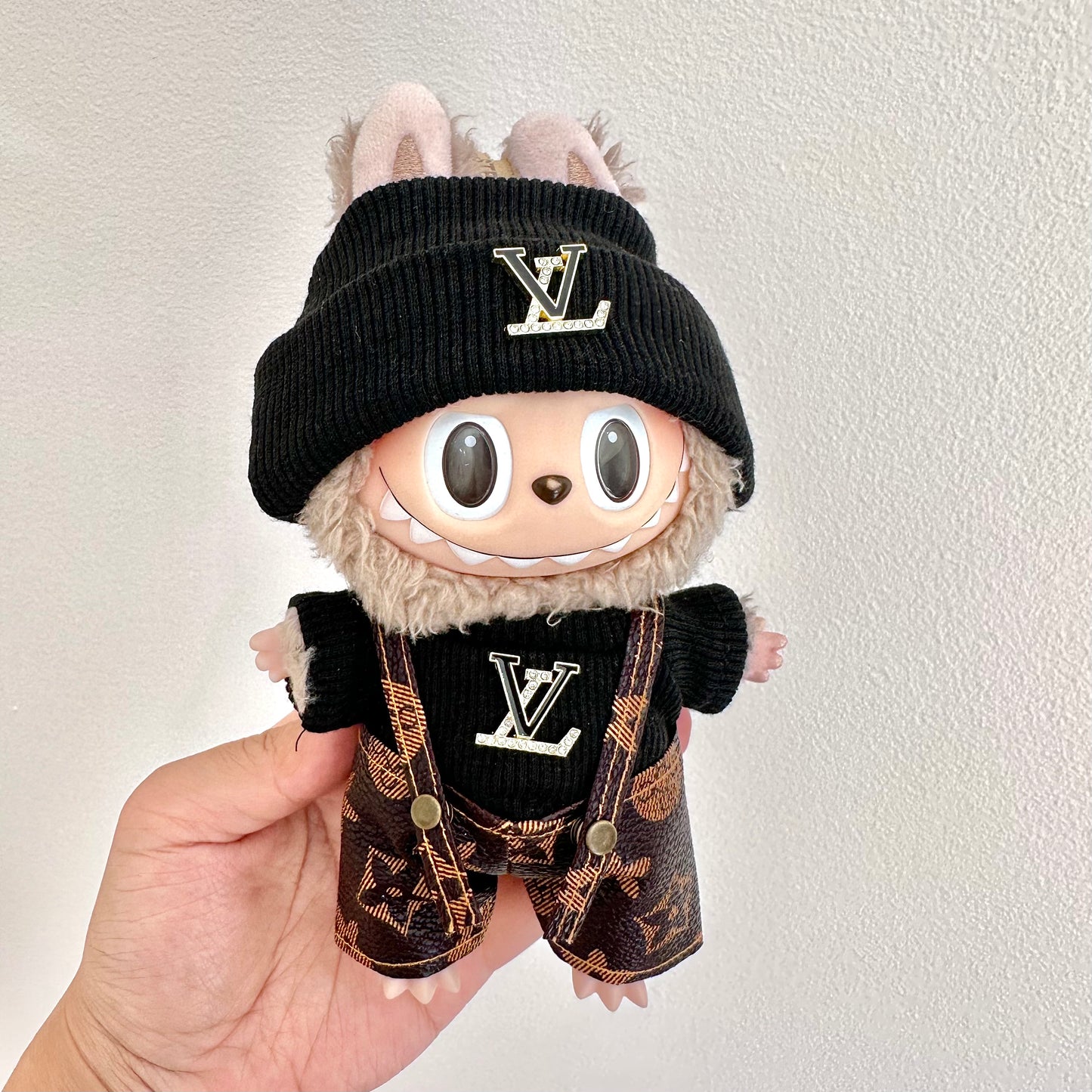 POP MART The Monsters Labubu Fashion Dress – LV Style Top+ Hat + LV Style Overalls