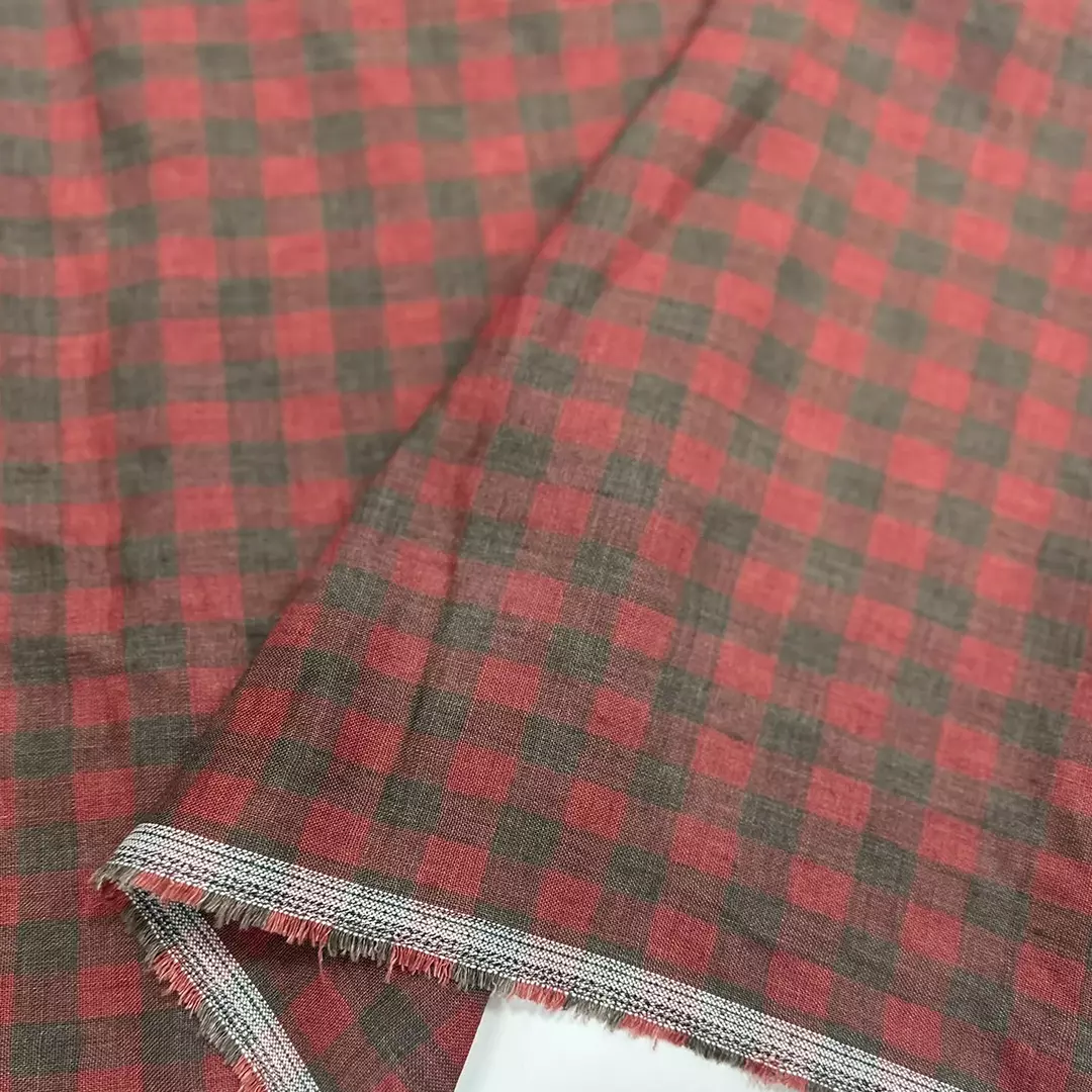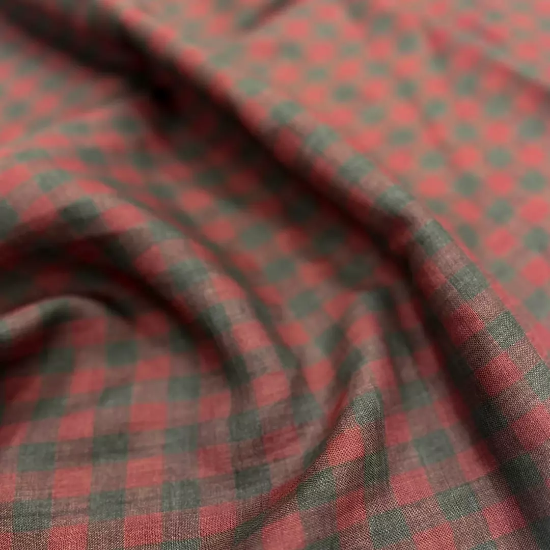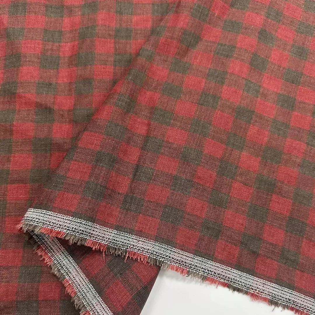 Crafted from 100% linen, this yarn-dyed checked fabric features a warm blend of red and earthy brown tones, giving it a rustic yet refined aesthetic. The fabric undergoes a sand-wash treatment for an extra-soft handfeel and a relaxed drape. With a medium weight of 175gsm and a width of 140cm, it offers an ideal balance of structure and breathability.