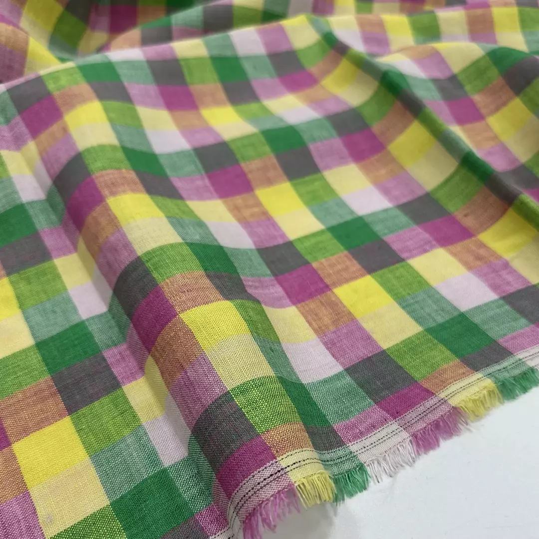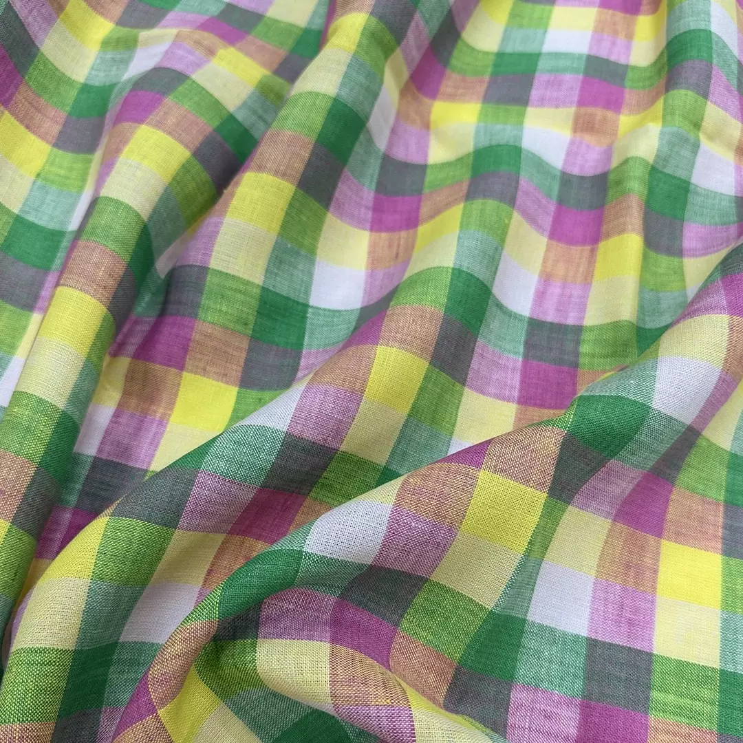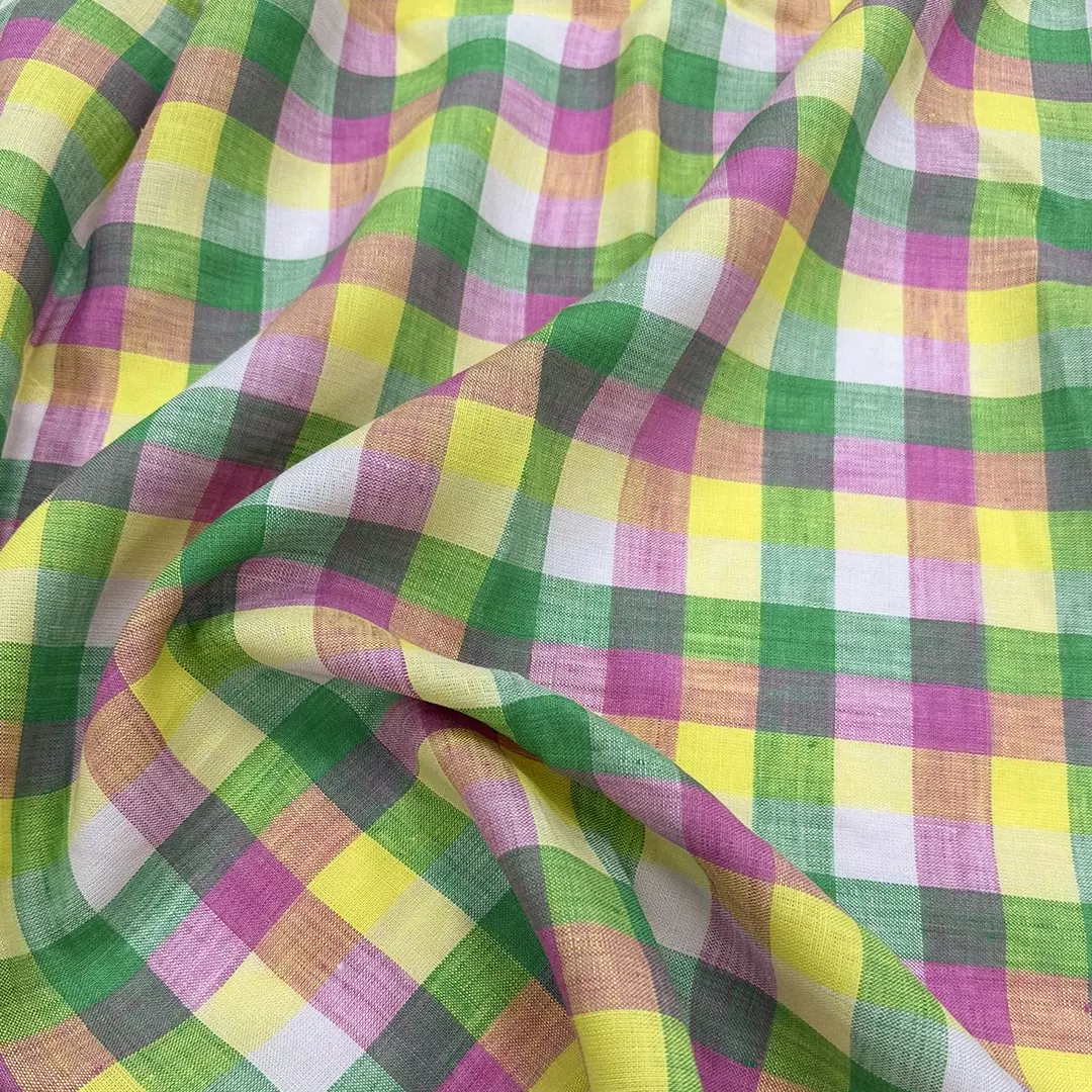 This 100% linen fabric is yarn-dyed with a classic gingham check pattern, offering a vibrant and timeless design. The fabric has been pre-washed for a soft, lived-in feel and enhanced drape. With a weight of 165gsm and a width of 140cm, it provides a perfect balance of breathability and durability.